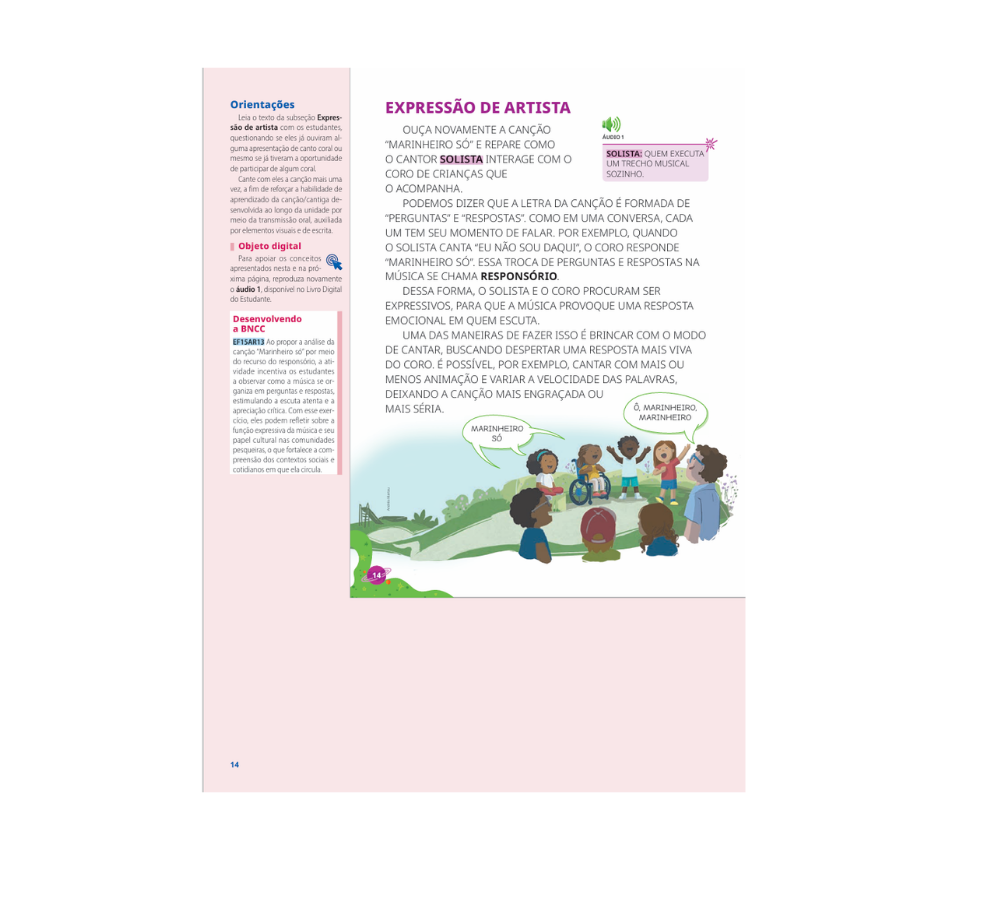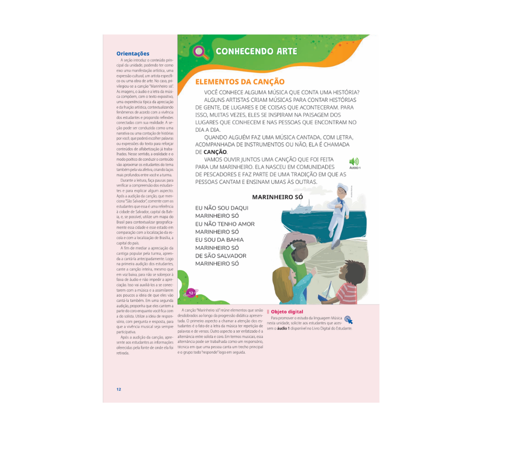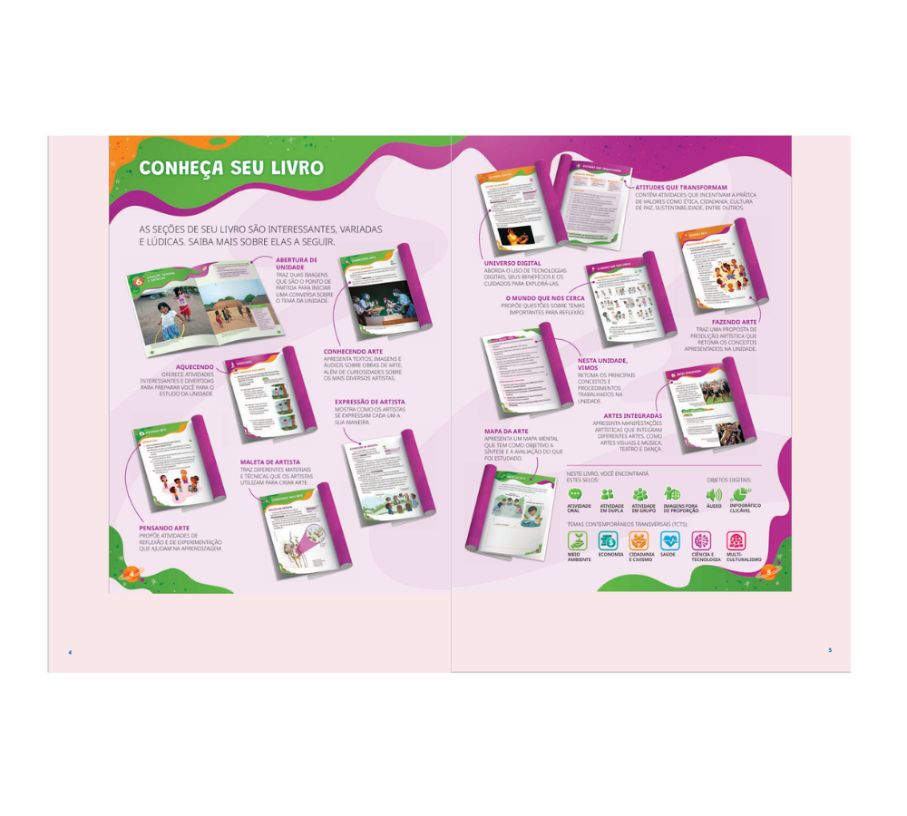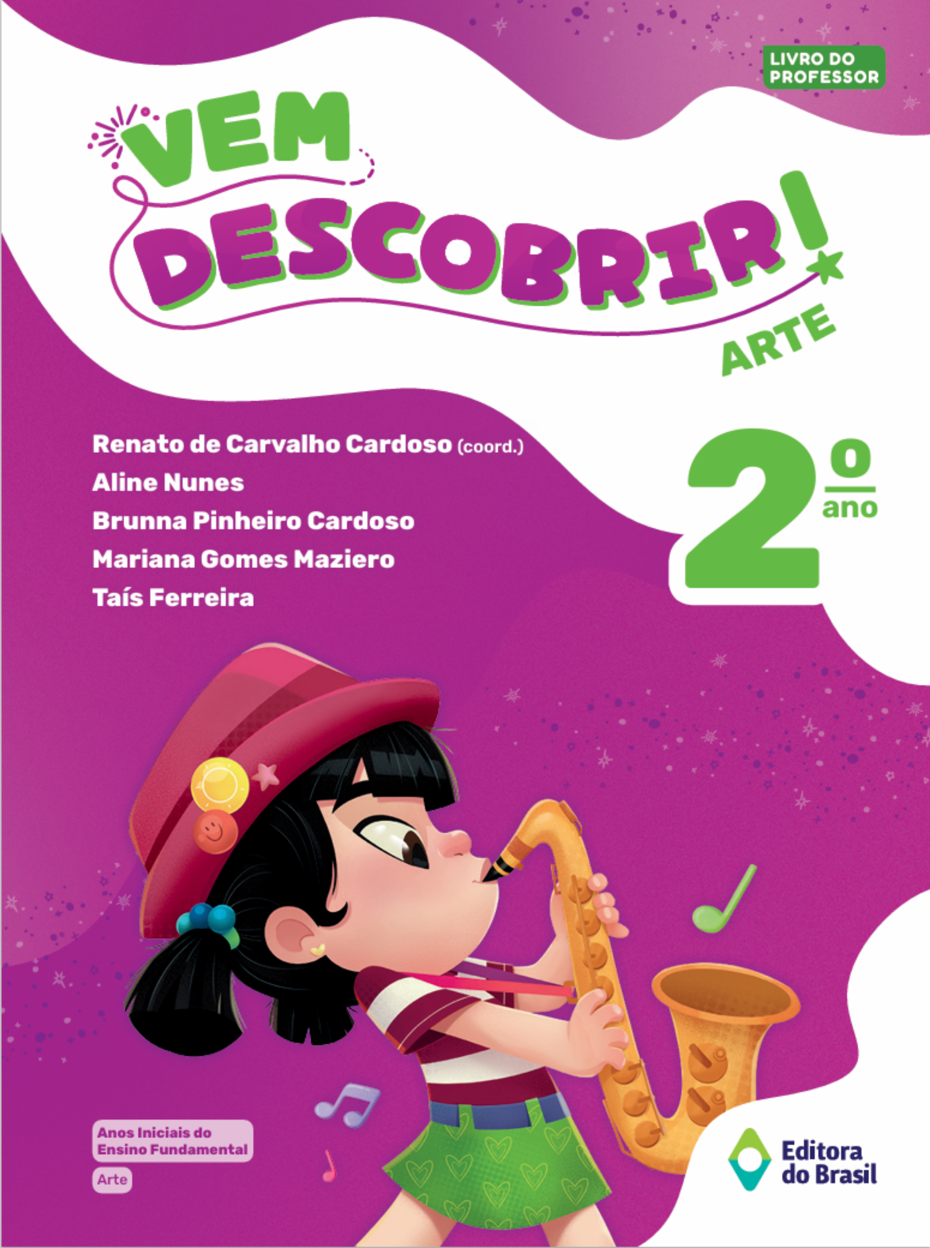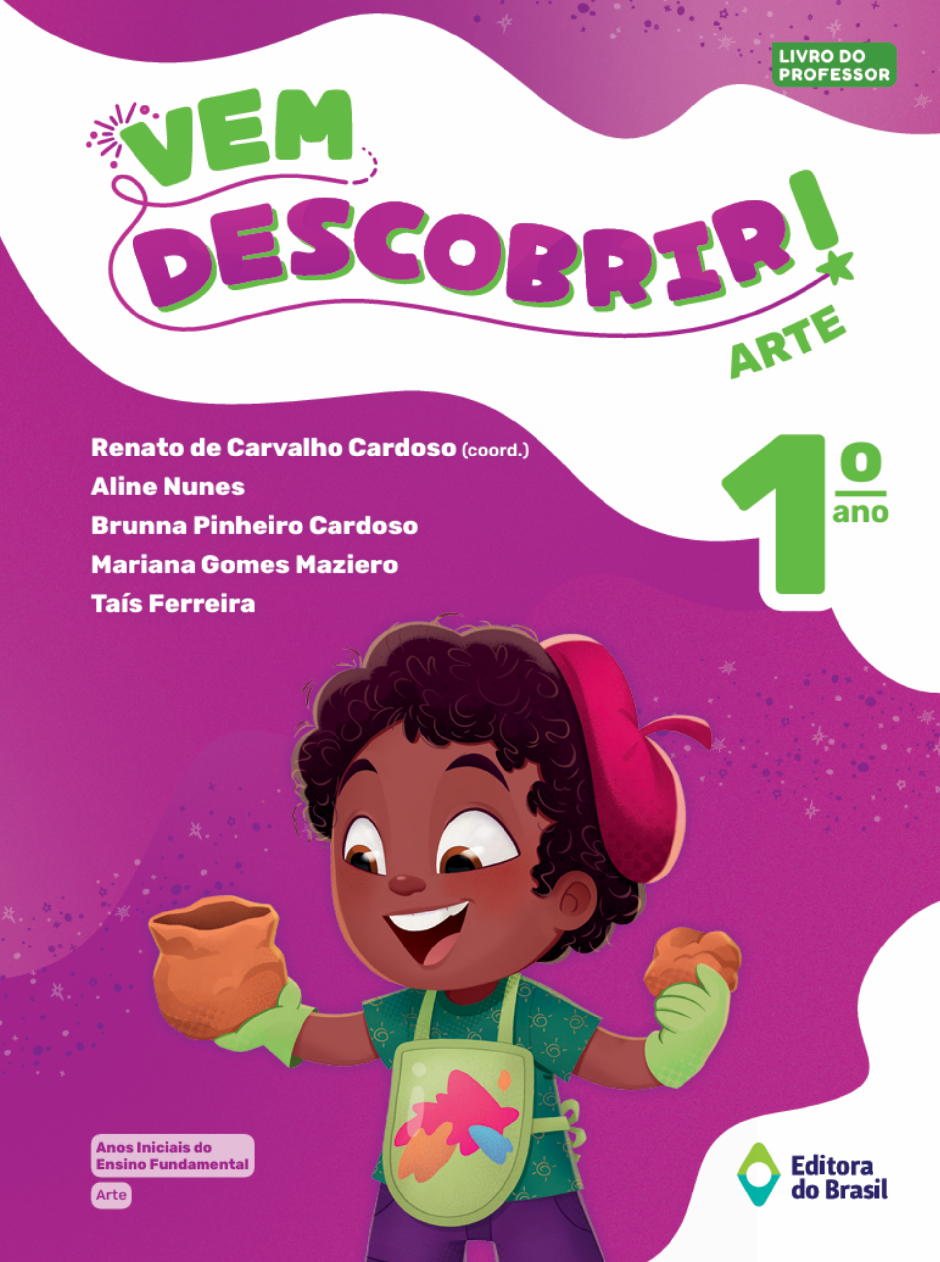 A obra Vem Descobrir! Arte, destinada ao 1º e 2º anos, propõe experiências artísticas centradas na experimentação, na exploração sensorial e na expressão livre, respeitando o modo como a criança aprende e se expressa. O estudante tem contato inicial com Artes Visuais, Música, Dança e Teatro por meio de propostas lúdicas, acessíveis e significativas.