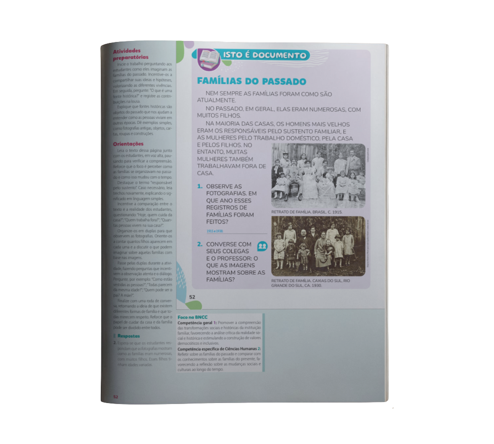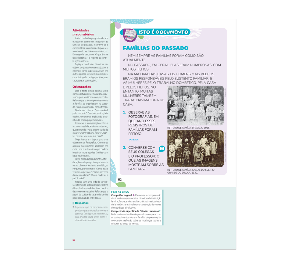 Análise de documentos acompanhada de atividades que vão auxiliar a desenvolver os temas da unidade.