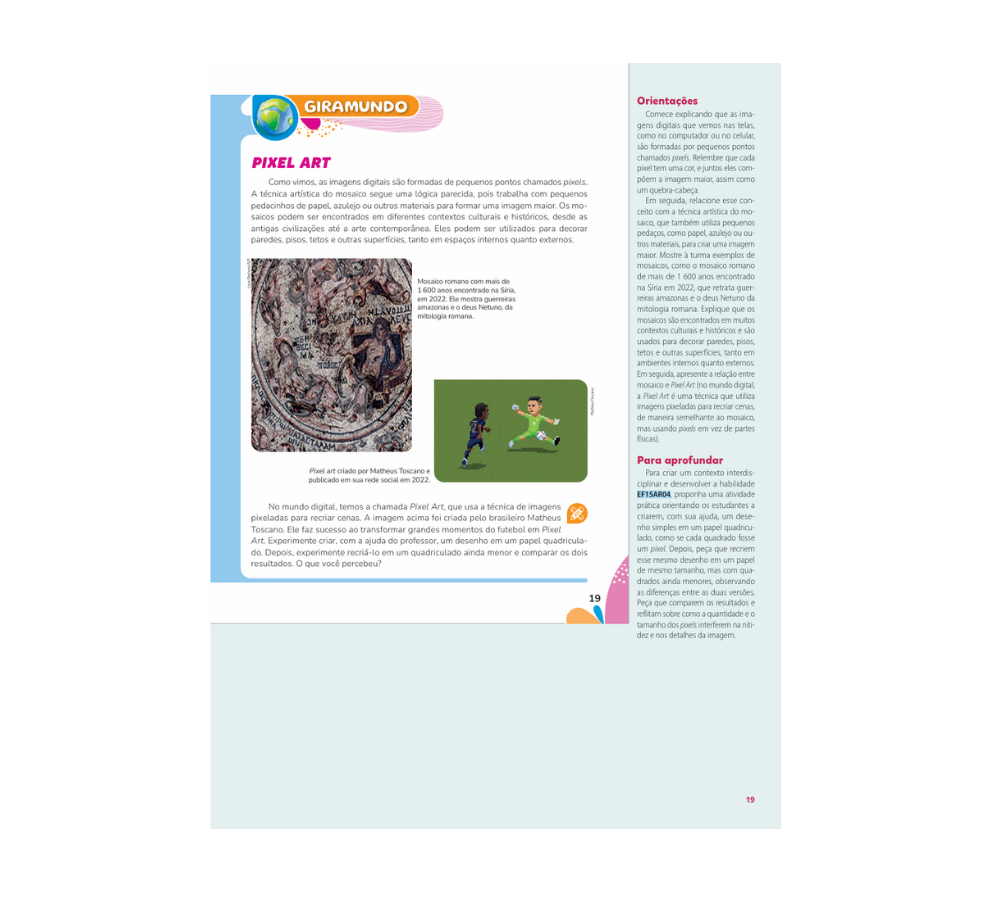 Informações e atividades que conectam a Educação Digital e Midiática a diversas áreas do conhecimento, como Arte, Ciências, Geografia, História, Língua Portuguesa e Matemática.