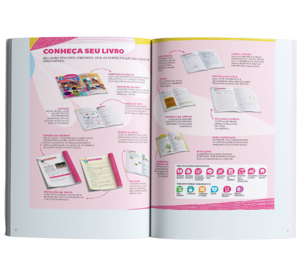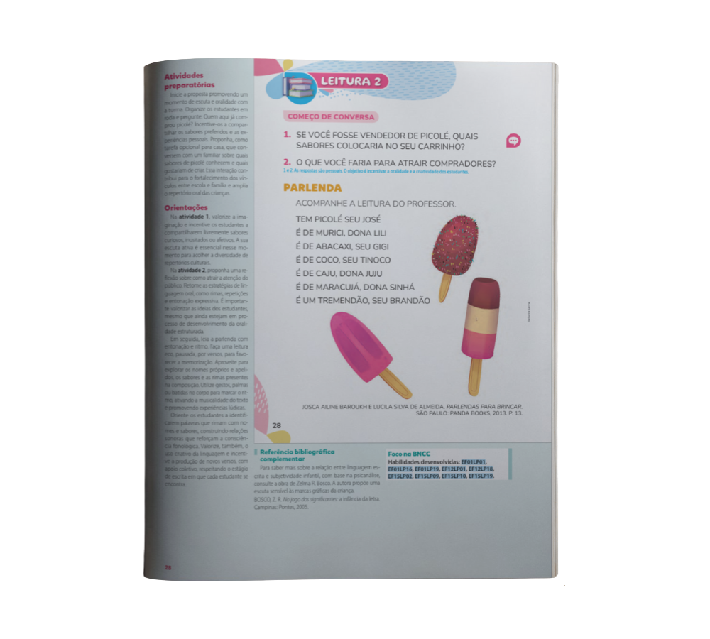 • Formação leitora e escritora desde o início. Com linguagem acessível, textos atuais e representativos, a proposta estimula o gosto pela leitura, o desenvolvimento da escrita e a participação oral, respeitando o ritmo e o perfil das crianças.