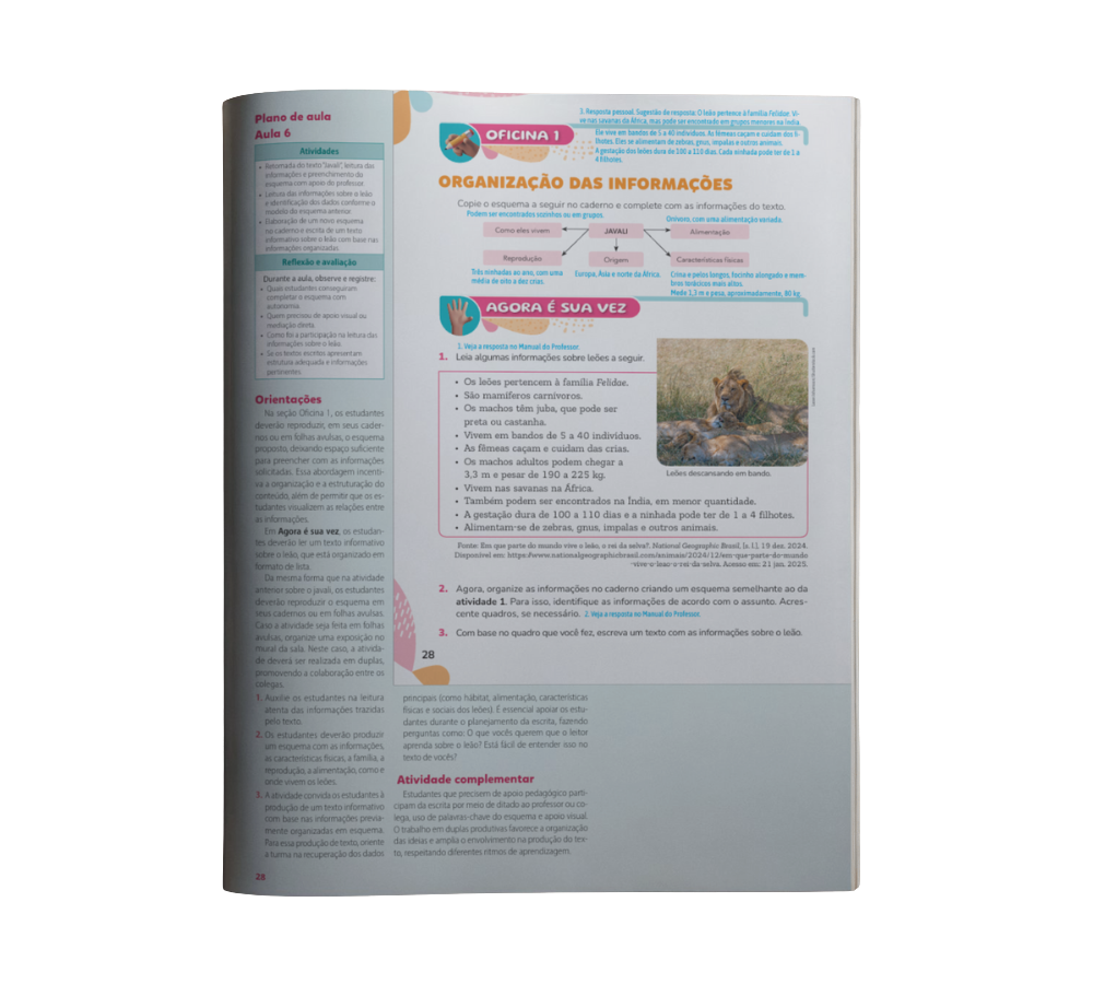 Seção que apresenta atividades de retomada do conteúdo das oficinas, com propostas de pequenas produções de texto relacionadas ao gênero.