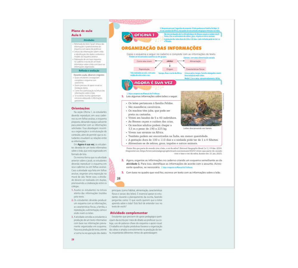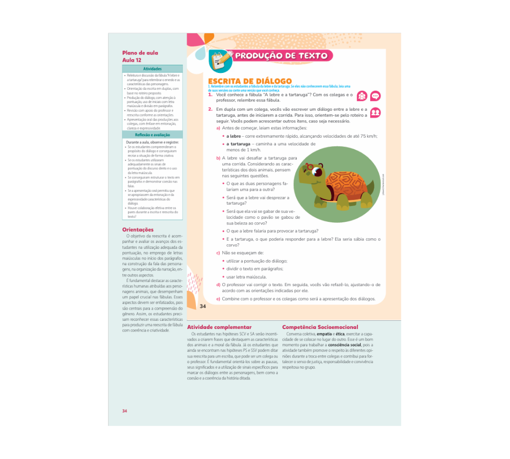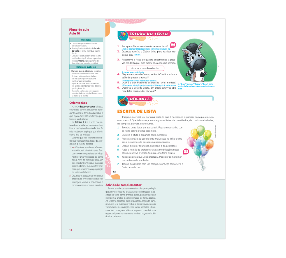 • Apoio consistente ao professor no ensino da escrita. A obra oferece oficinas bem estruturadas, orientações detalhadas e organização progressiva, facilitando o acompanhamento e a mediação do processo de produção textual.